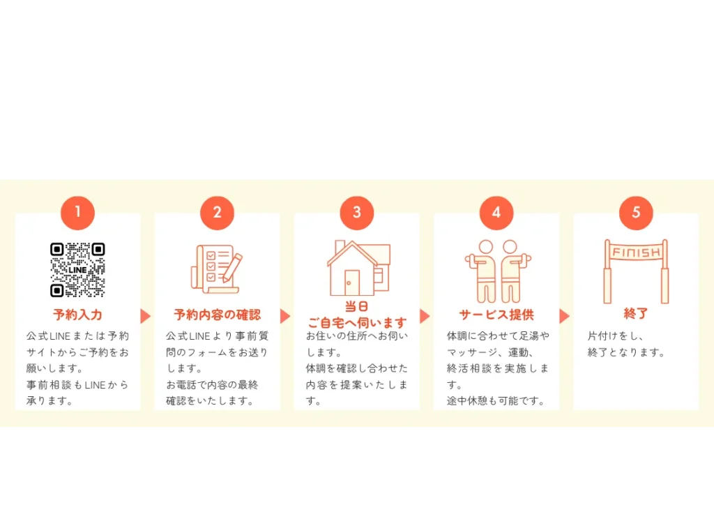 ・定期訪問では医療行為・介護行為は行いません。